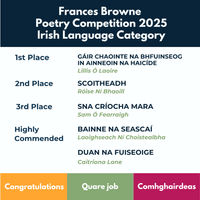 Tá Comórtas Filíochta Ilteangach Frances Browne 2025 DUNTA d’iontrálacha.